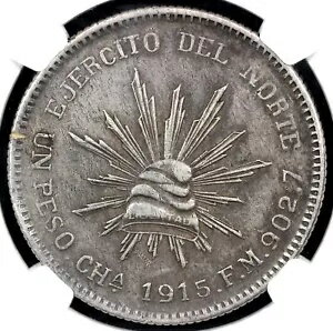 1915- CH FM「Army of the North」メキシコ チワワ シルバー ペソ NGC AU58 NICE