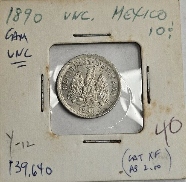 1890 Ca M メキシコ 10 センタボス チワワ シルバー 希少!!中部+