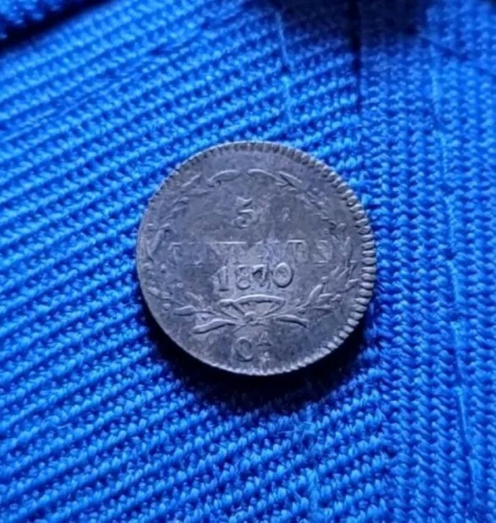 メキシコ 1870年 5センタボ チワワ 銀貨