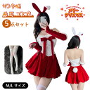 \5点セット/サンタ コスプレ レディース サンタクロース セクシー 兎耳 ウサギ カチューシャ クリスマス サンタコス 大人 コスチューム 可愛い クリスマスコスチューム パーティー 仮装 忘年会 文化祭 豪華5点セット