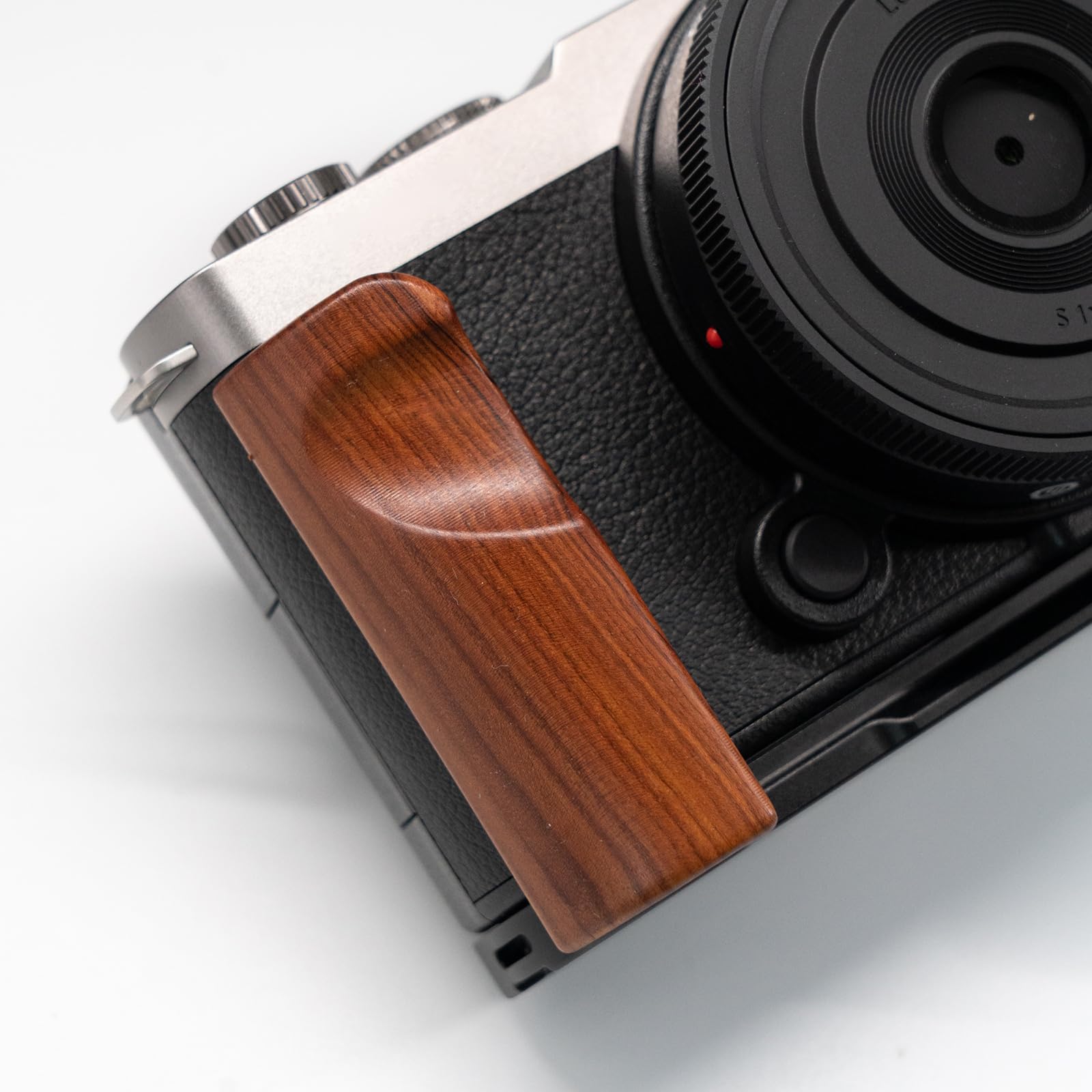 Iborrys 高級実木 カメラグリップ 、対応 パナソニック Panasonic LUMIX S9 カメラ 、 専用 L型クイックリリース プレート 職人手作り プレミアムレトロ天然 木製ハンドル (紫光黒檀銀板)