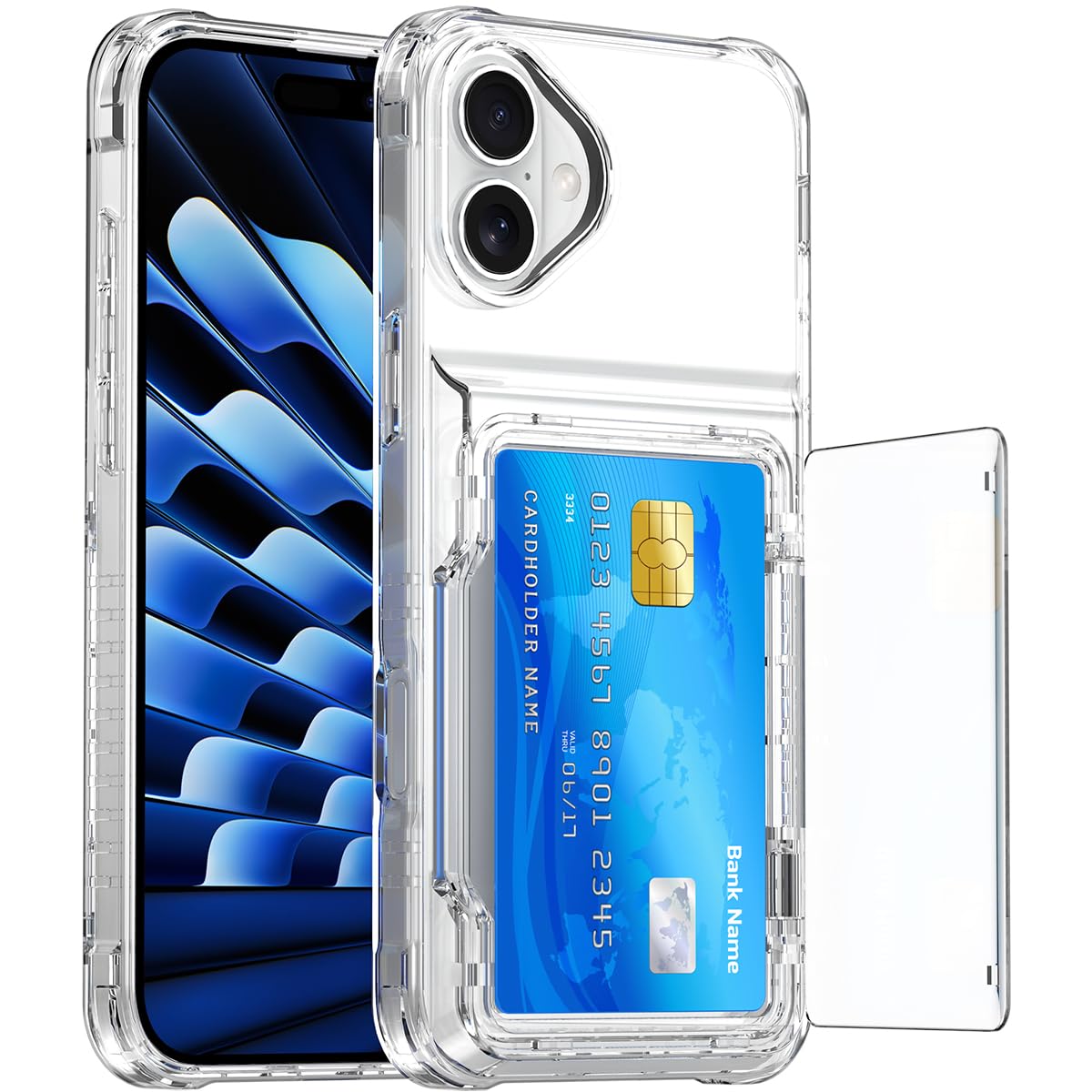 ・【対応機種】iPhone 17 用 6.3インチ 専用のケースです。ワイヤレス充電対応。機種を間違いないようご注意下さい。・【カード収納】交通カード、クレジットカード、ICカード、定期券、ビジネスカード、名刺などが収納でき、出かけにとても便利です。・【米軍MIL規格の保護】衝撃吸収エアガードコーナーと隆起したスクリーンエッジ、カメラガードの組み合わせにより、落下、衝突、傷から保護。・【驚きの透明さ】保護力が強いと同時に、iPhone 17 用ケースの全体が透明で、スマートフォン本来の美しさと高級感をそのままに楽しめます。・【全面の保護】iPhone 17 用 の各ボタン部分への操作性、アクセスしやすさを考慮した最適な設計になっております。前面も背面もフチを高く設計し液晶画面とカメラレンズをキズから保護します。