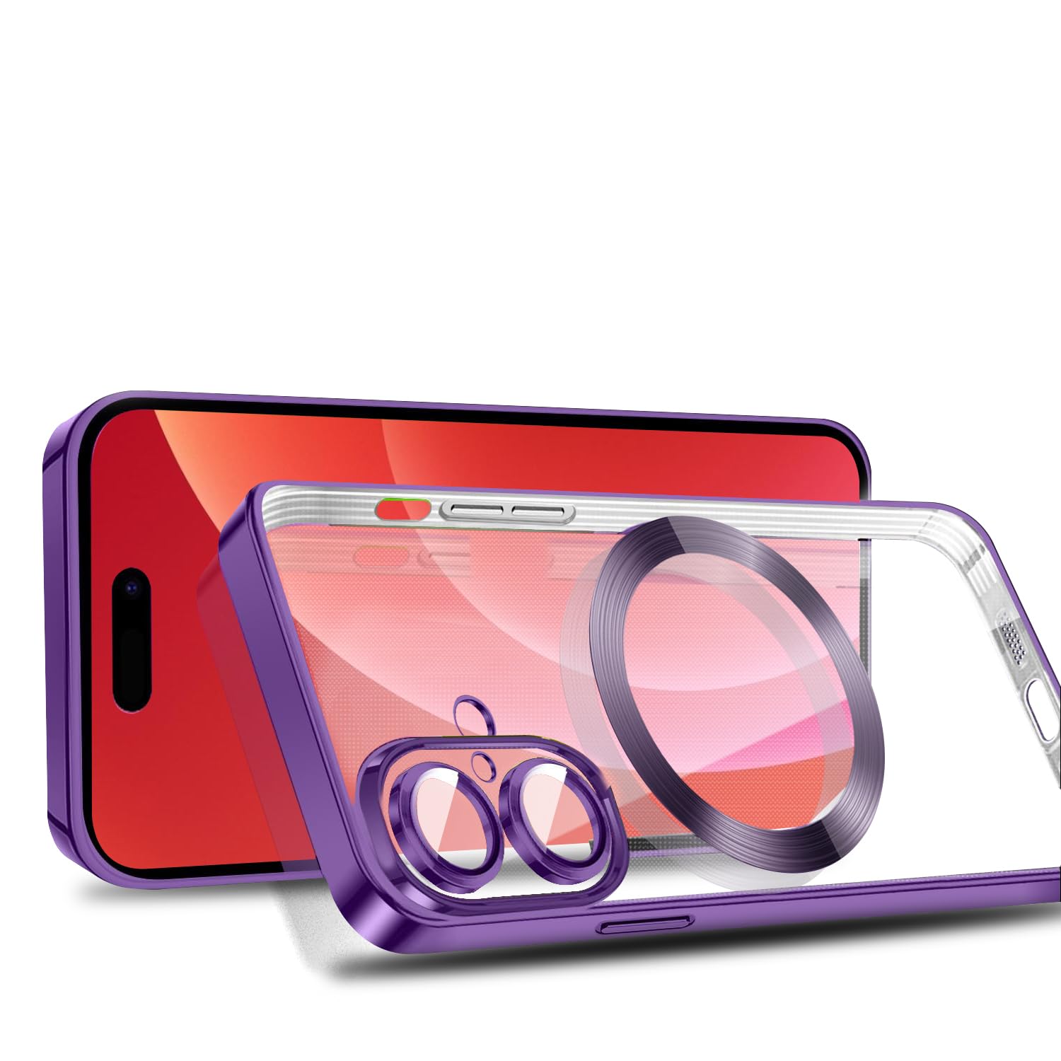 MuZiF iPhone 16 用 ケース クリア メッキ加工 Magsafe対応 永久磁石 レンズ保護 TPU ソフトケース 薄くて軽い 人気 耐衝撃 携帯カバー アイフォン 16 用 クリアケース (iPhone 16用,ダークパープル