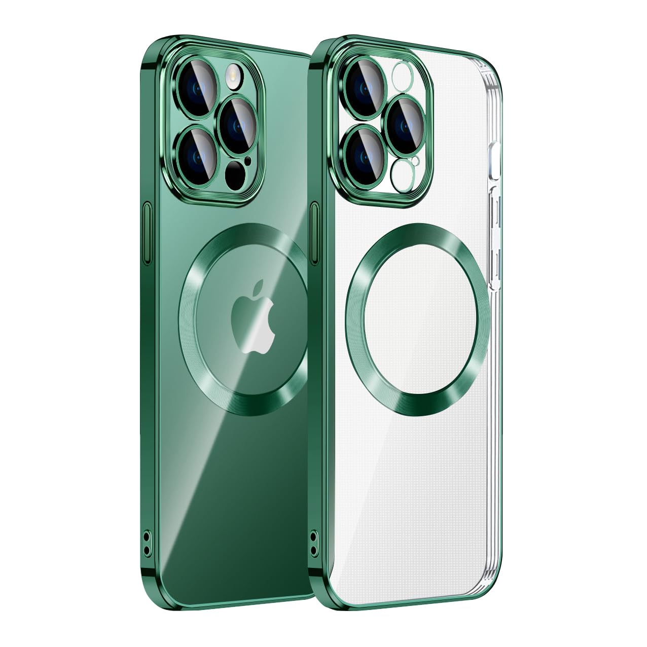 MuZiF iPhone 15 Pro 用 ケース クリア メッキ加工 Magsafe対応 永久磁石 レンズ保護 TPU ソフトケース 薄くて軽い 人気 耐衝撃 携帯カバー iPhone15 Pro 用 クリアケース (iPhone 15 Pro,グリーン