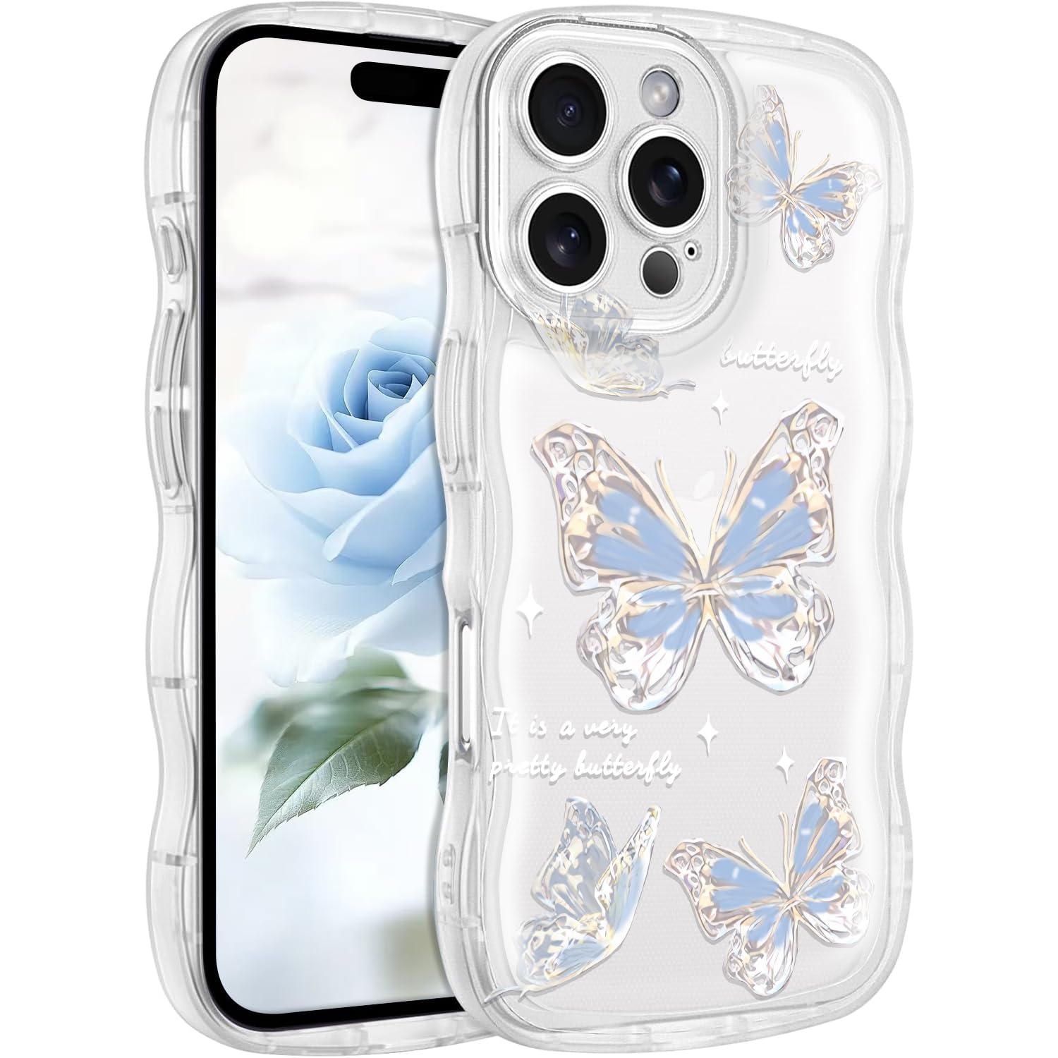 MuZiF iPhone 16 Pro Max 用 ケース クリア 可愛い ちょう ウェーブ TPUソフトケース 透明 かわいい 韓国 薄くて軽い 人気 おしゃれ 耐衝撃 携帯カバー 16 Pro Max 用 スマホケース (iPhone 16 Pro M