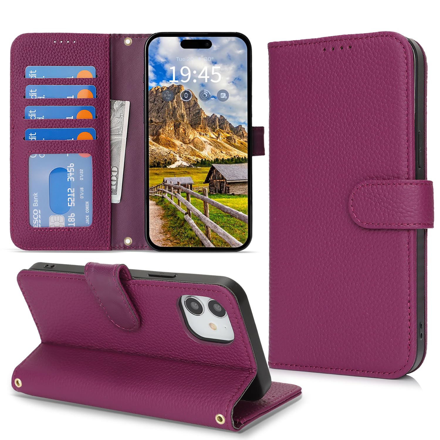 DEYHU 対応 iPhone 11 ケース 手帳型 カード収納 スタンド機能 アイフォン11 ケース 本革 大容量 耐衝撃 カード収納 iPhone11 ケース 手帳型 iphone 11 レザー カバー ローズパープル