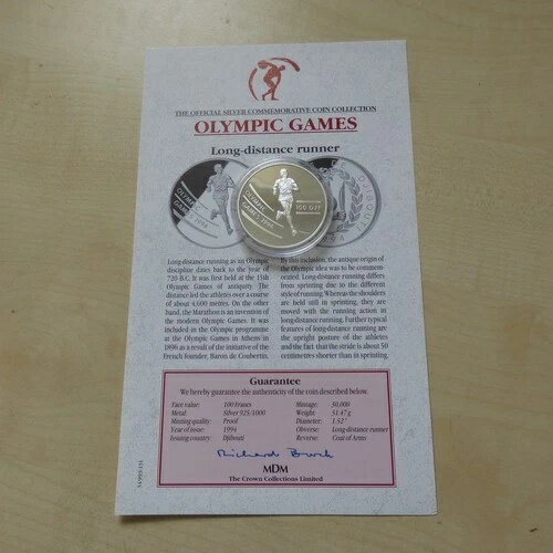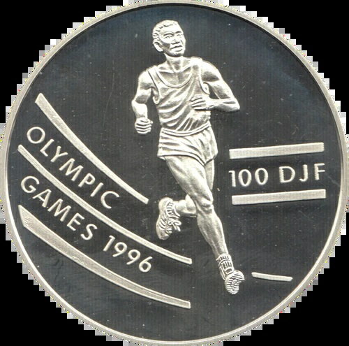 ジブチ 100フラン 1994年 銀貨 プルーフ 1996年 オリンピック 長距離走 COA