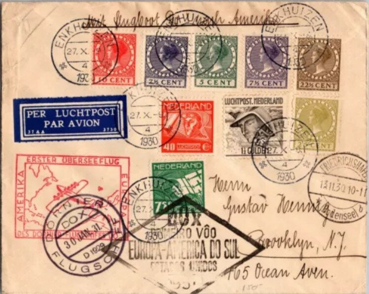 1931年オランダ ドルニエ DOX 大西洋横断初飛行カバー FFC アメリカ ブラジル行き
