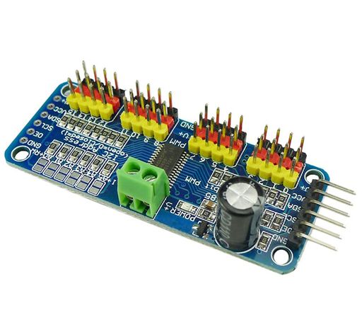 PCA968516チャンネル12-ビットPWMServoモータードライバーIICモジュール マイコンボードのI2Cに接続して16台までのサーボを制御出来ます 62枚のボード連結により最大992台のサーボを制御 電圧:DC5-10V電源通信インターフェイス:IIC サイズ:25*61ミリメートル
