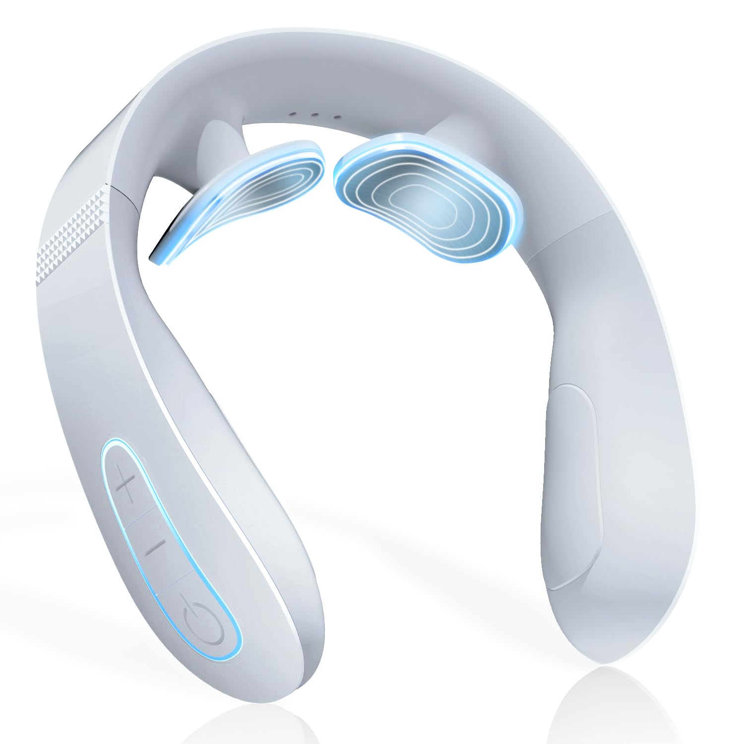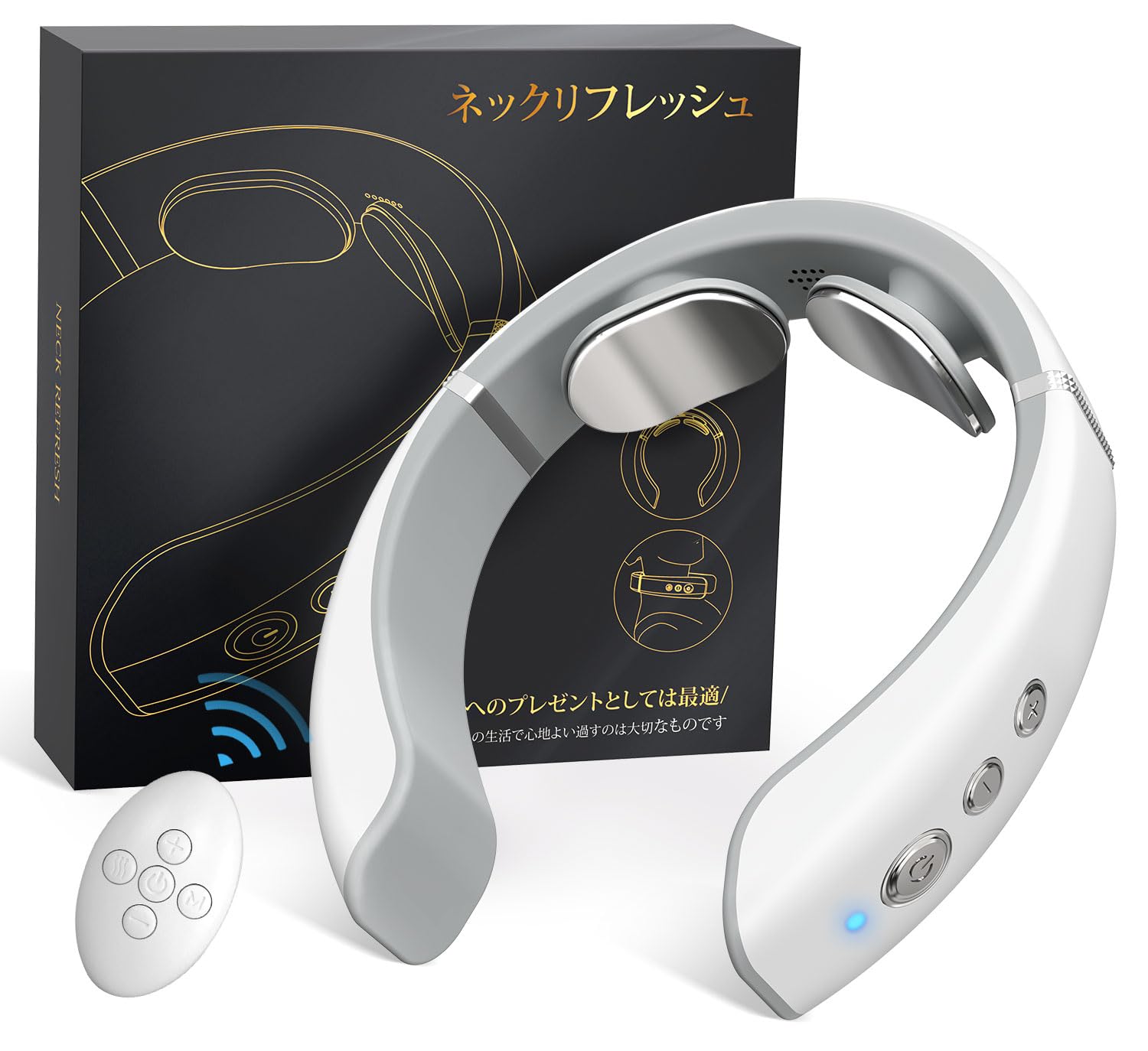 ・【新しいデザイン・リラクゼーション体験】ネックケア 電動はTENSとEMSの両方の周波数のパルス波を組み合わせることで、振動とパルスで、表面だけでなく、インナーを完全にリラックスさせ、広範囲かつ集中的なケアを可能にしました。加温機能も搭載、ぽかぽか気持ちいい! ※EMSは筋肉を直接刺激し効果を与えるため振動するものではございません。両パットがしっかりと肌に触れた状態でのみ効果を感じられます。・【10種類のモード・強さ19段階・加温機能】ネックケアはプロの技を再現した10モードのネックリラクゼーション(EMSとTENSが同時作動)を搭載しており、家にいながら充実したリラクゼーション体験を楽しむことができます。19段階の強度調節が可能で、お好みのモードと強度を自在に組み合わせることができます。(初めての方は、強度レベル1から始め、慣れてきたら徐々に強度レベルを上げていくことをおすすめします)。また、加温機能も搭載しており、首元のトータルケアも可能です。加温機能は単独でも使用でき、寒い日にはネックウォーマーとしてもお使いいただけます!・【リモコン付き・日本語音声ガイダンス・100g超軽量コンパクト】ネックリラックスはリモコン付いており、電源ON、EMSモードの調節、加温機能ON/OFF、またはEMSの強度調節は全てリモコンで操作可能です。お年寄りの方も簡単に操作することができます。日本語音声ガイダンス機能により、手元を見ずに操作できるので、機器が苦手な方でも気軽にお使いいただけます。音声ガイドはOFFにできるので、公共の場など音声ガイドが使いにくい場所でも全く気にする必要はありません。わずか100gの重さもコンパクトで持ち運びに便利。使い方は簡単で、心地良い効果を簡単に得られます。・【500mAh大容量バッテリー・15分自動OFF】 便利なUSB充電式ネックケア、一回フル充電で、毎日1回、1回つき15分の使用では最大20回使用できます。バッテリー容量は製品によって異なりますが、通常は数回の使用に耐えることができます。大容量バッテリーのおかげで、外出先や旅行先でも楽しむことができます。ご使用の状況により使用可能回数は変化していきます。※初回は電池残量が少ないため十分充電してからご利用ください。・【男性にも女性にも最適なプレゼント】リラクゼーションは家で掃除をする時も、在宅ワークする時も、図書館で勉強する時も、アウトドアでキャンプをする時も、釣りの時も、通勤時の電車でも男女どちらも使用できます。コードレスなので、自由に持ち運んだり、外出先で掛けたり、バッグに入れたりすることができます。いつでも手軽に疲れを取りたい方におすすめです。また、リラクゼーションを求める現代人への贈り物として、自分へのご褒美に、大切な人への プレゼントとしても大変喜ばれます。※肌が乾燥している場合は、温感・電極パッドが触れる部分を水やハンドクリームや付属の速乾コットンを水で絞り、温感・電極パッドが触れる部分に当ててご使用ください。(速乾コットン付属)