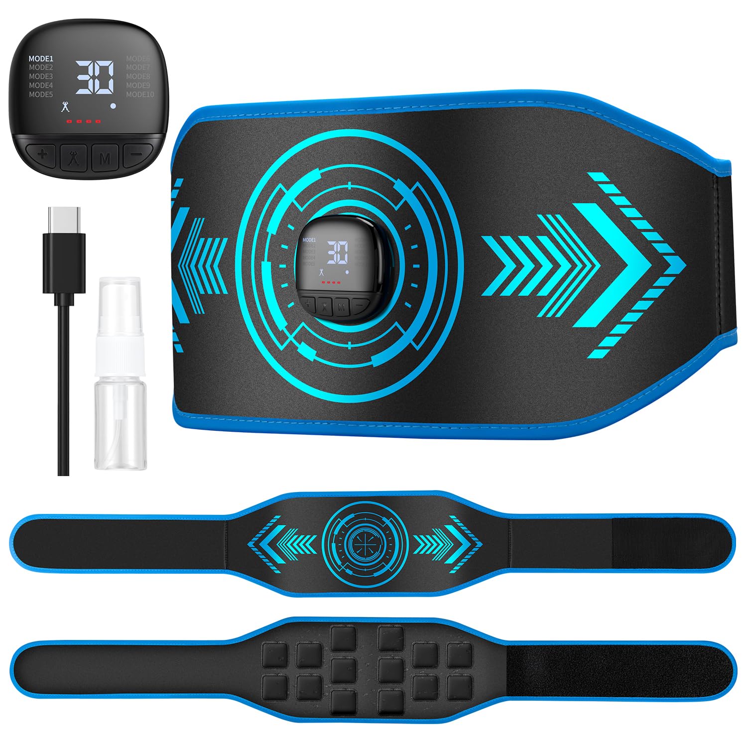 【30分だけで本格エクササイズを実現】進化版ステンレス鋼電極パッド。ベルト型EMSは巻くだけでお腹をしっかりキャッチ。EMS腹筋ベルトは、何もしなくても体の外側から電気を与え、意識しなくても筋肉を動かすことが可能にです。他社のシートタイプより腹部への密着度が高くずれ落ちにくいため、最大の特徴は通常の導電布の刺激よりも安定して快適です。家事や作業、運動などをしながらご使用いただけます。 【10モードと強さ30レベルトレーニング効果】30分間自動オフ機能が搭載されるので時間をお気になる必要がありません。腹筋ベルトで30分の運動量はジョッキング3000m、自由泳60分、腹筋鍛え60分にあたります。初心者にも女性にも、特にサラリーマンや運動不足の方にも需求に満足し、簡単にトレーニングできる理想な鍛錬器具です。お腹下、お腹上、ウエスト左右、背中等の部位に巻いて。バッテリー残量が少なくなると、次の問題が発生します。モードは調整できますが、強度を調整できず、ゼロを超えることはできません。時間通りに充電してください。 【カロリー表示&経済的USB充電式】腹筋ベルトは電池交換不要のType-C充電式です。