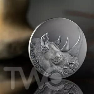 Black Rhino Expressions of Wildlife 2オンス アンティーク仕上げ シルバー コイン カメルーン 2023