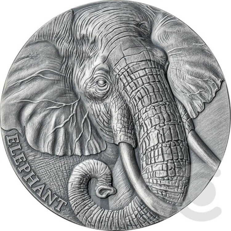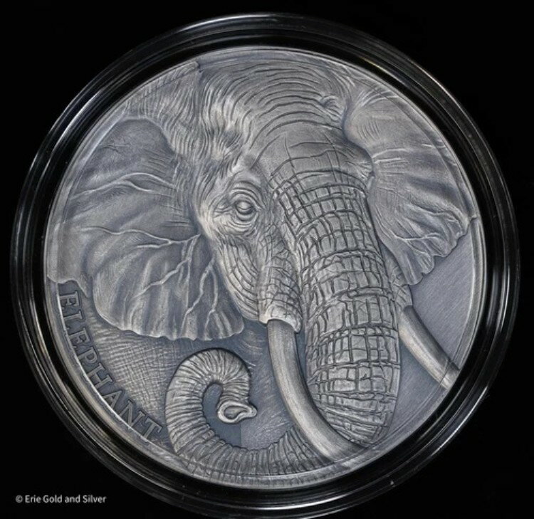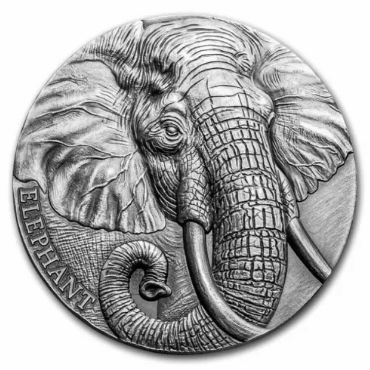 2023年アンティーク高浮き彫り象野生動物表現2オンス銀貨(OG)