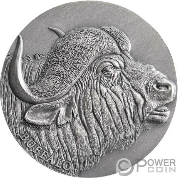 バッファロー エクスプレッションズ オブ ワイルドライフ 2 オンス アンティーク仕上げ シルバー コイン カメルーン 2022