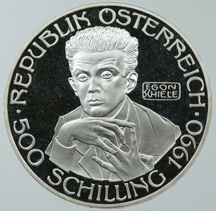 1990年 オーストリア 表現主義画家 エゴン・シーレ プルーフ銀貨 マザー i116625