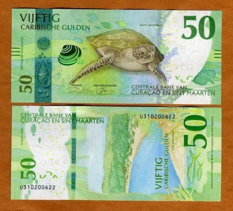 キュラソー島およびシント・マールテン島 50 グルデン、2025 年、P-New、UNC 新紙幣