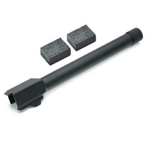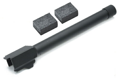 GUARDERMのFMG-9コンバージョンキット対応サイレンサーロングアウターバレルです。 マズル先端がアッパーレシーバーの内側になるサイズで、スティール製スレッドキャップ(ネジカバー)も付属します。 注 意 サイレンサーアダプター部分(ネジ部分)がアッパーレシーバーの内側に入る設計になるため、サイレンサーの直径が20mm前後のものでないと取り付けができません。14mmメス、14mmオスタイプの延長アダプターなどを別途取り付けたサイレンサーでなければ取り付けができない場合があります。ご注意ください。 インナーバレルを組み込む際、ホップチャンバー側の右側にある突起部分(写真二枚目を参照)を削り落とす加工が必要です。 付属のウレタンパットはアッパーカバー内側に張り付けることでショートリコイルキャンセルバレルを保持しで動作性を向上させるためのものです。 組み込みは簡単ですが説明書等は付属しておりません。