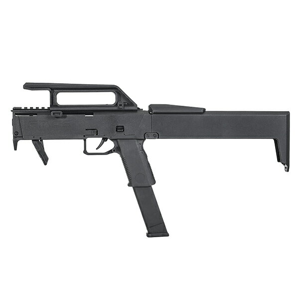 電動ガン、モデルガン、エアガン、カスタムガン、カスタム電動ガン販売中!モケイパドック【安全性の注意点】●製品説明書をよく読んで取扱下さい。●エアガン・電動ガン・ガスガンは周囲の状況を確かめながら人や車が通らない場所で遊びましょう。●エアガンの形をしているものを持ち運ぶ場合は、周囲に誤解や恐怖を与えないようケースやバッグをお使い下さい。●サバゲー会場以外では、小さい子供やマナーの知らない人に触らせないようにしましょう。●エアガンから放たれたBB弾は跳ね返りますので必ずエアガン・電動ガン・ガスガンで遊ぶ場合はゴーグルを着用しましょう。●人や動物にエアガン・電動ガンを向けたり発射してはいけません。●絶対にエアガン・電動ガンの銃口を覗いてはいけません。MARUYAMA FMG-9 ガスブローバック ブラック 台湾エアソフトブランド MARUYAMA Co.より要人警護向けをコンセプトに考案され、ボックス状態から瞬時にサブマシンガン状態に展開し射撃を行える折りたたみ式サブマシンガン FMG-9をモデルとしたガスブローバックガンが登場です。 本商品は、VFC GBB G18Cのメカニズムをベースとしたブローバックエンジンを搭載するコンプリートガスブローバックガンとなります。 外装はナイロン樹脂にガラス繊維が配合された強化樹脂で製作されています。 フロントギリギリまで延長されたエクステンションアウターバレルに、展開用ヒンジ部分にスチール製スリングループ、45連ガスマガジンを標準装備したコンプリートモデルらしい内容となっています。 内部メカニズムは、VFC製 GBB G18Cのメカニズムをベースとして、セミ、フルオートの切り替えが可能な耐久性の高い金属製スライドとなっています。 ショートリコイルがオミットされた固定式のエクステンションアウターバレルを備え、チャンバーもVFCのホップアップアジャストシステムに準拠した設計です。 銃本体を分解せずとも銃口側から六角レンチにより調整可能なHOPアジャスト機能やチャンバーパッキンもVFC現行の長掛けタイプのパッキンを採用しており、より安定した射撃を行えるように図られた内容となっています。 ギミックは、本体のチャージングハンドルを操作することで素早く展開し、折り畳む際には、グリップ部分が折れ曲がり本体ストック部に収納されるなど、実際の製品と同様のギミックを忠実に再現しています。 <特徴> ・MAGPUL FMG 9スタイル ・繊維入り強化ナイロン樹脂 外装 ・固定式エクステンションアウターバレル ・スチール スリングループ ・VFC GBB G18C メカニズム ・分解せず銃口側から調整可能なHOPアジャスト機能 ・45連 Gスタイル ガスマガジン 全長:約 281 / 492mm(展開時) 重量:約 1175g 装弾数:45発 セレクタ:セーフ、セミ、フル パワーソース:HFC134aなど 主要材質:樹脂、アルミニウム合金、スチール、金属等 ※開封時、展開ヒンジ部のピン固定ネジとスチールスリングループは、外された状態となっていますのでご注意ください。 ピン固定ネジを外れたまま使用しますと、展開ヒンジが分解してしまう恐れがあります※