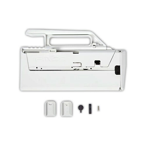 電動ガン、モデルガン、エアガン、カスタムガン、カスタム電動ガン販売中!モケイパドック【安全性の注意点】●製品説明書をよく読んで取扱下さい。●エアガン・電動ガン・ガスガンは周囲の状況を確かめながら人や車が通らない場所で遊びましょう。●エアガンの形をしているものを持ち運ぶ場合は、周囲に誤解や恐怖を与えないようケースやバッグをお使い下さい。●サバゲー会場以外では、小さい子供やマナーの知らない人に触らせないようにしましょう。●エアガンから放たれたBB弾は跳ね返りますので必ずエアガン・電動ガン・ガスガンで遊ぶ場合はゴーグルを着用しましょう。●人や動物にエアガン・電動ガンを向けたり発射してはいけません。●絶対にエアガン・電動ガンの銃口を覗いてはいけません。【AEGIS CUSTOM FMG-9 コンバージョンキット ホワイト FMG9 AEGIS CUSTOMのグロック用コンバージョンキットのFMG-9。 ■商品説明 マグプルが開発した、ワンモーションで展開する折り畳み式サブマシンガン『 FMG-9 』を東京マルイ系グロックガスガンで再現できるコンバージョンキット。 ※別途、グロック 18C / 17 Gen.3 ガスガンが必要です。装着にはグロック内部パーツの分解・組込が必要で上級者向け商品です※ ■対応:東京マルイ・VFC・WE グロック 18C / 17 Gen.3 ガスガン ※ 対応は東京マルイ・VFC・WEのグロック18Cと17 Gen.3(旧型)ガスガンだけで、以下は非対応です。 【非対応】[東京マルイ] グロック 17 Gen.4 / 19 / 26 / 34 ガスガン、グロック電動ハンドガン、グロックエアーコッキングガン、[BATON airsoft] BG-17 CO2GBB(2022年秋〜冬発売予定)、[KSC・KWA]等 上記3メーカー以外のグロックガスガン、グロックモデルガン 1. 東京マルイ・VFC・WEグロック18C/17 Gen.3ガスガンに対応:東京マルイ系のG18C / 17 Gen.3に対応可能な設計で、どのブランドの製品を使用しても円滑な作動を実現。 2. 最高強度のミルスペック素材を使用:米軍で使用される軍用ポリマー素材であるナイロン66を使用し、ミルスペックに適合する強度を実現。 3. より進歩した耐久性:従来存在したモデルで破損しやすいパーツは素材を変更し耐久性を向上(グリップとフレームをつなぐボタンパーツもスチール製)。 【コンバージョンキットの部品構成】 コンバージョンキット本体、キャリングハンドル(脱着可)、専用セレクター、リアサイトプレート、ノズルハウジングスクリュー、マガジンプレート(マルイ・WE用×1、VFC用×1) 【ガスガン本体から必要なパーツ(G18Cの場合)】 スライド部:スライド&内部パーツ一式(フロントサイト:除去、リアサイト&セレクター交換) レシーバー部:ハンマーブロック、フレーム後部ピン(3×22)、ネジ(2.6×6)、トリガーバー、スライドキャッチ