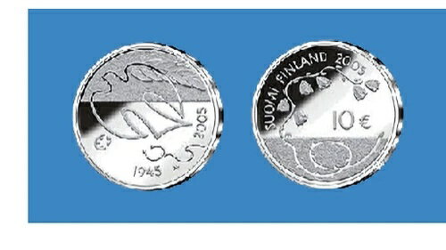 フィンランド。10ユーロ、2005年。平和と自由の60年。シルバー・プルーフ