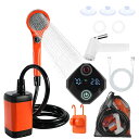 ポータブルシャワー 9000mAh 充電式 簡易シャワー 液晶表示 アウトドア風呂用 スプレイガン&収納ネット付き 屋外 キャンプ 洗車 ガーデン 水やり 海水浴 旅行 家庭用 防災 IPX7防水 PSE認証済 (オレンジ)