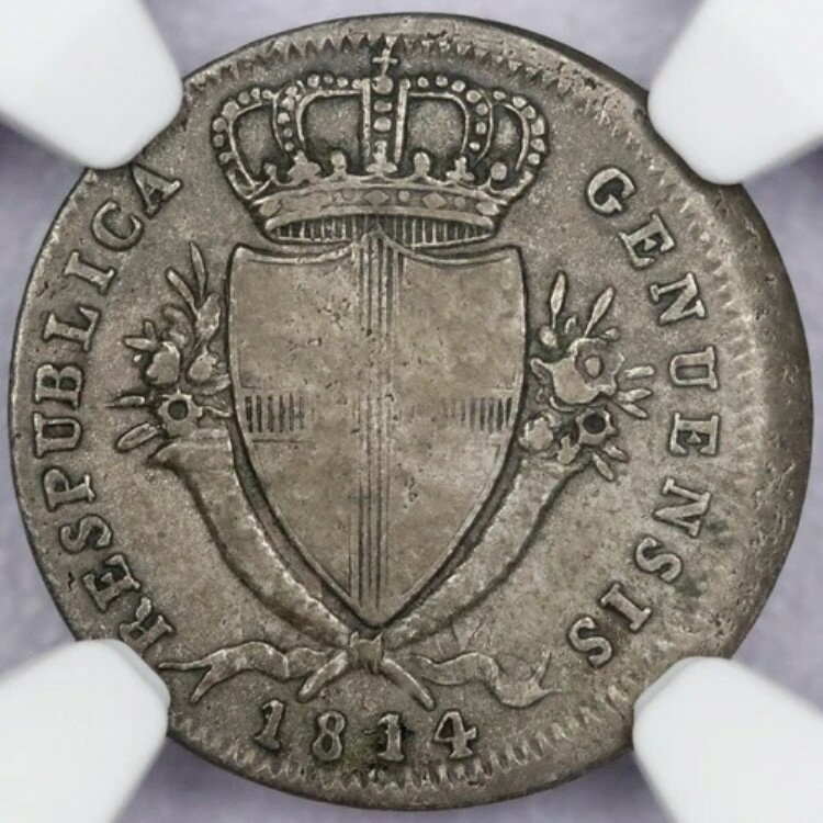 1814年 イタリア 2ソル ジェノバ「プレシディウム」造幣局エラー - NGC VF 35 ブロードストラック