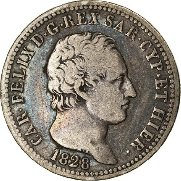 コイン、イタリア、サルデーニャ、カルロ・フェリーチェ、リラ、1828年、ジェノヴァ、S+、銀-
