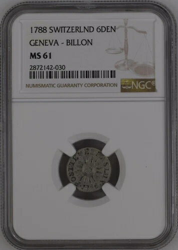 :1788 6デニール(ビヨン)スイス ジェノバ KM#-79 NGC MS61 ローポップ レア R-8 1/9