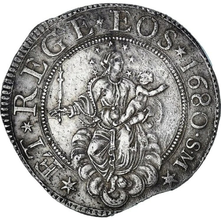 [#347860] イタリア、ジェノヴァ共和国、スクード、1680、ジェノヴァ、SM、AU、シルバー、KM:79
