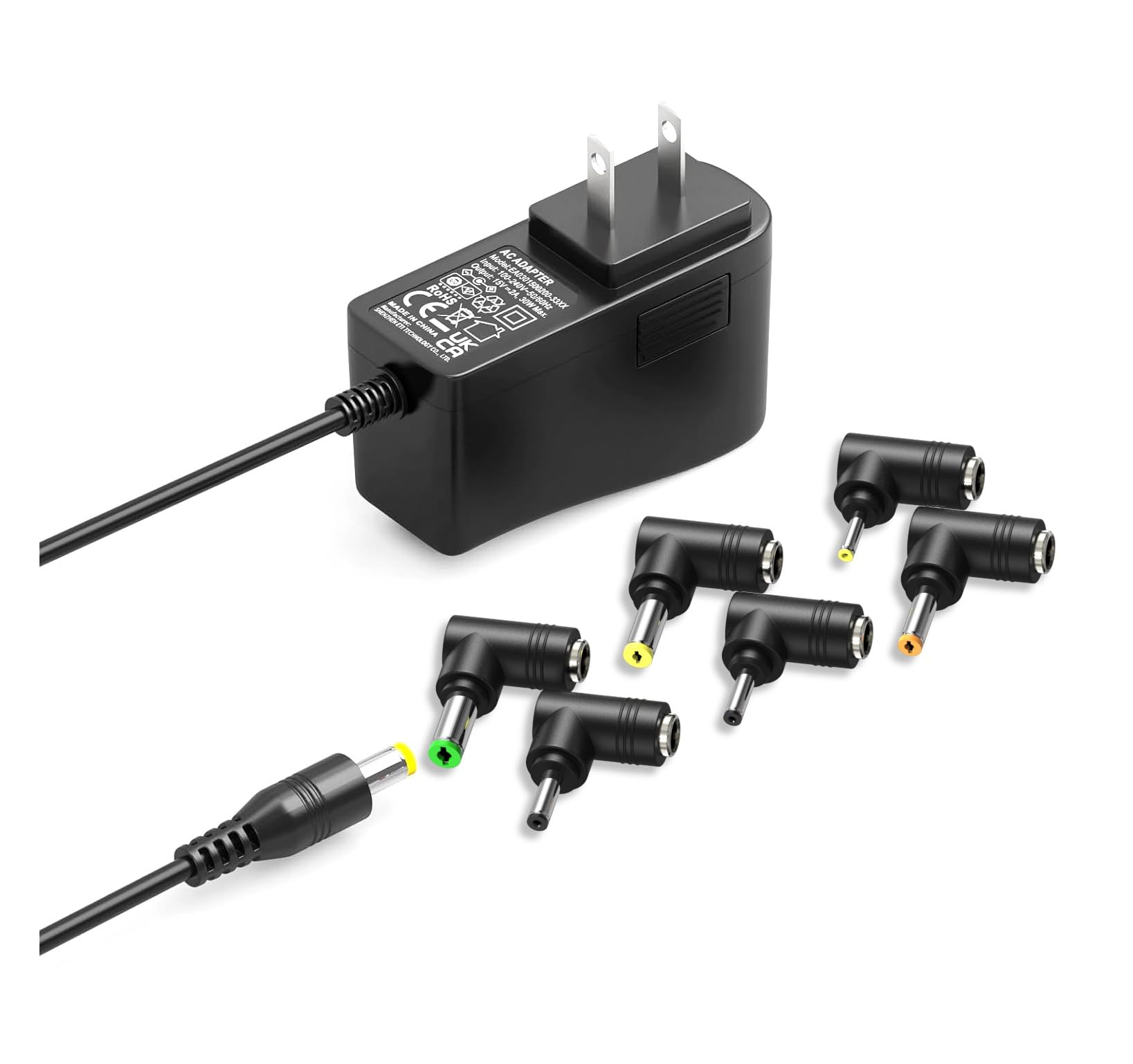 dc 15V 2A 電源 アダプター 30W 汎用ACアダプター 15ボルト 2a 1.5a 1a アダプター dc15v LEDストリップ CCTV カメラ ルーター 液晶モニターに対応acアダプター 6個変換コネクター 5.5*2.1mm