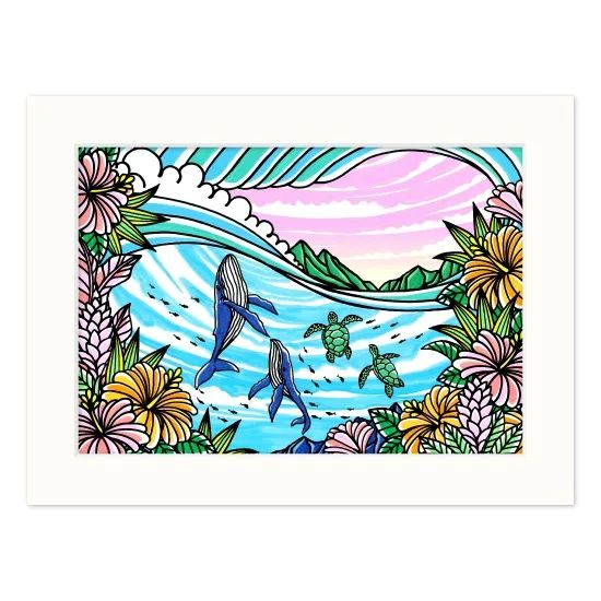 ハワイ アート 絵画 壁掛け TAMO(タモ)ハワイアン インテリア アーティスト 海 ビーチ リゾート 絵 作品 アートプリント ポスター (Under the Sea) 波 花 ハイビスカス ホヌ ウミガメ クジラ 魚 風景 景色 hawaii