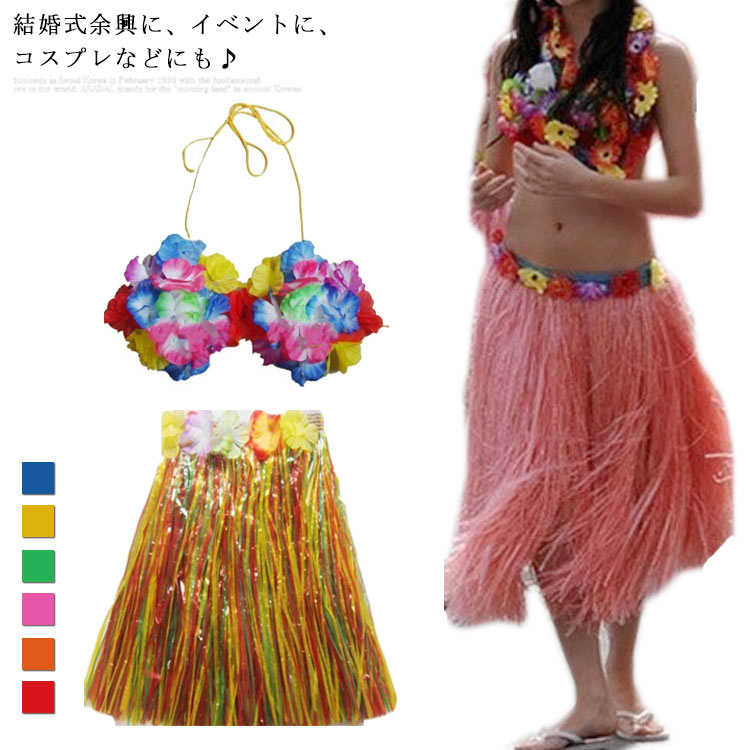 送料無料 全7色! ハワイアン スカート コスプレ フラダンス 衣装 忘年会 結婚式 余興 二次会 新年会 腰みの スカート パーティー イベント ハワイアンスカート 仮装 ウェディング 出し物 コスチューム 大人 子供 学園祭 体育祭 仮装マラソン ハロウィン