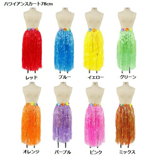 ハワイアンスカート78cm(レッド、ブルー、イエロー、グリーン、オレンジ、パープル、ピンク、ミックス)【コスプレ・イベント・ハロウィン】