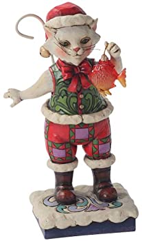 【中古】【輸入品・未使用】Enesco Jim Shore Heartwood Creek クリスマス猫 魚の置物付き 6-1/2インチ