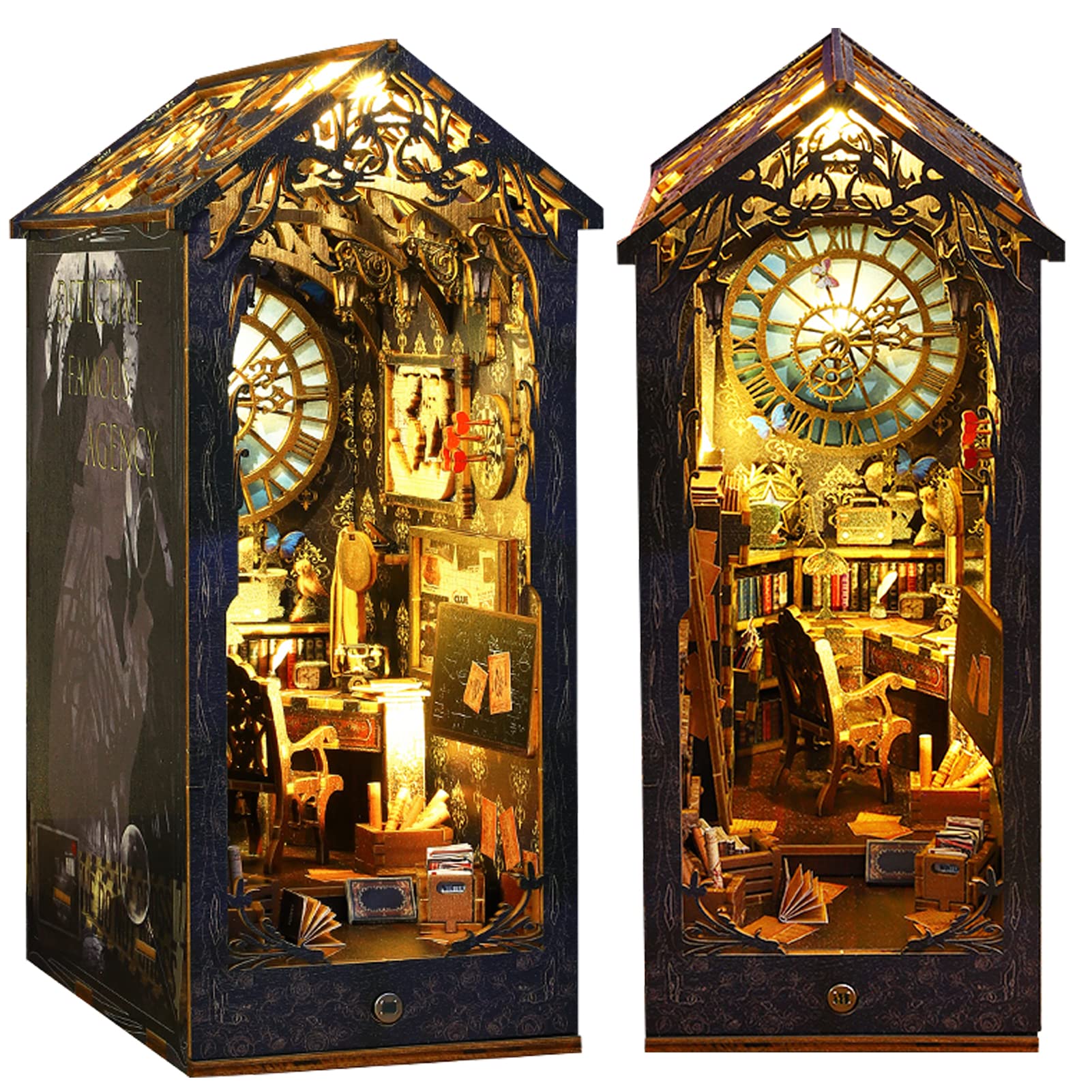 diy 木製 ミニチュア ドールハウス 手作りキット ファニチャー セット インテリア オーナメント 新築祝い 創造的 + led ライト、 3d パズル おもちゃ 子、友達、恋人 誕生日、休日、クリスマスプレゼント (探偵事務所) 14 歳以上対象