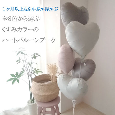 1ヶ月以上ぷかぷか浮かぶ【200円OFFクーポン】くすみ カラー ハートバルーン 5ピースブーケ トープ グレージュ 誕生日 名前 開店祝い 結婚式 ウェルカム 数字 文字入れ シック シャビー インテリア 浮かせて 記念撮影 1才 女の子 男の子