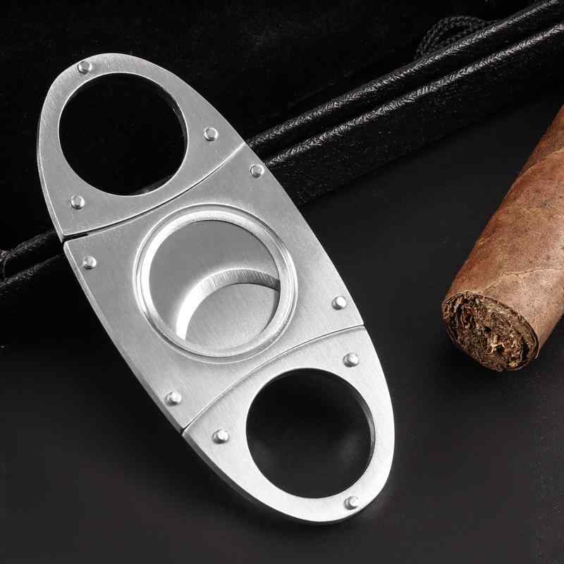 シガーカッター ステンレス製 携帯用 コンパクト はさみ式 両刃 頑丈 サンドブラスト加工 葉巻パンチ付き 葉巻アクセサリー 男性用 ギフト 喫煙具(x2)