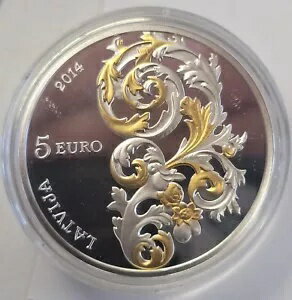 2014 5 ユーロ プルーフ銀貨ラティヤ/クルゼメス バロックス。コレクターコイン..925