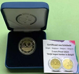 ベルギー 2 ユーロ 2024 がん記念コイン コインケース プルーフ