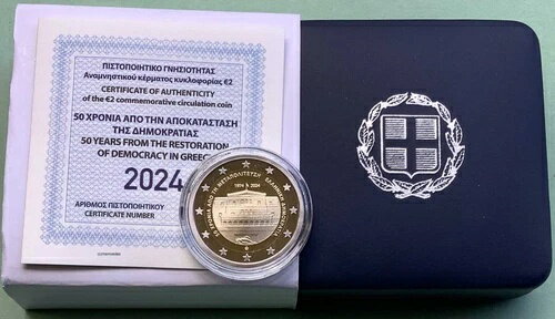 ギリシャ 2 ユーロ 2024 民主主義記念コインケース プルーフ PP-