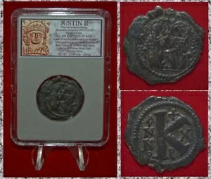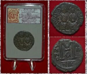 566-577 ビザンチン AE フォリス コイン ジャスティン II & ソフィア 40 ヌンミ ベターグレード。