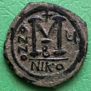 ジャスティン II & ソフィア AE フォリス、Rev Large M Cyzicus Mint 565-578 AD #3940 Nice