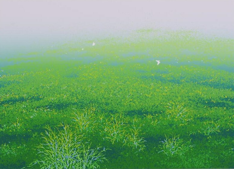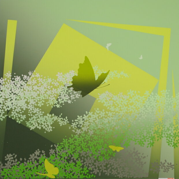 蝶 絵画 草原 野原 風景画 絵 シルクスクリーン 版画 池上壮豊 「萌草-5」 額付き 国内送料無料