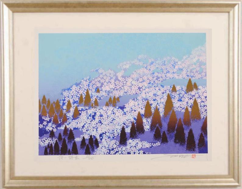 【作家名】池上壮豊【作品名】春気 桜 絵画 花 絵 シルクスクリーン 版画 額付き 国内送料無料