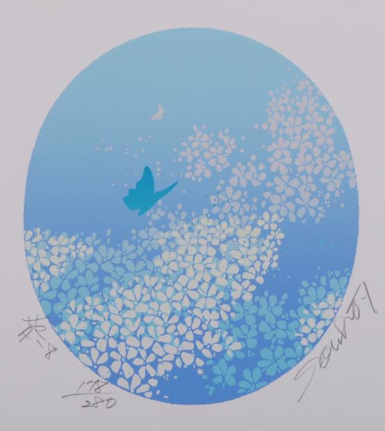 画家名:池上壮豊 ●作品名:苑-8 ●絵のサイズ:W13,5×H15cm ●額装サイズ:W31,5×H31,5cm ●版画の技法:シルクスクリーン ●サイン:作家直筆鉛筆サイン ●限定枚数:280部 ●納期:7日 作品の限定番号は必ずしも同じではありませんのであらかじめご了承ください。 池上壮豊先生がシルクスクリーンの版画で制作した蝶の絵「苑-8」は、池上壮豊先生の蝶の絵のシリーズの中でも一番サイズが小さく、楕円の形をした珍しいシルクスクリーンの版画です。 小さくてもクオリティは非常に高く、色彩が美しい蝶の絵です。 玄関や階段の踊り場などに、こんな蝶の絵が飾ってあったらとても素敵だと思います。 また贈り物としても、こんな蝶の絵ならサプライズになると思います。 池上壮豊 プロフィール 1940年福岡県久留米市に生まれる。 1959年武蔵野美術大学に入学する。 1960〜1963年創元会展、春陽会展、自由美術会展等に出品する。 1964年個展、二人展、グループ展等に出品する。 1965年広告、出版等、イラストレータとして独立する。 1981〜1984年 日本版画協会展に作品を出品する。 1982年期待の新人作家賞展に作品を出品する。 1985年フィナール国際美術展に作品を出品する。 1987年AJACスペイン展、東京展に作品を出品する。 1988年〜各地でシルクスクリーンの版画の新作展を開催する。 1990年〜朝日、毎日など各新聞社主催の福祉基金にシルクスクリーンの版画を賛助出品する。 1993年CWAJ現代版画展に作品を出品する。 潮文社「山頭火句集」の表紙に選ばれる。 1993〜1998年近代日本美術協会の東京展、大阪展に作品を出品する。 1996年ベルギー国際展に作品を出品する。 1997年三人展を東京有楽町で開催する。 1998年CWAJ現代版画展、モナコ国際展に作品を出品する。 1999年CWAJ現代版画展に作品を出品する。 2000年CWAJ展で技法参考作品としてシルクスクリーンの版画が紹介される。 2005年〜読売新聞社主催の福祉募金にシルクスクリーンの版画を賛助出品する。 【受 賞】 自治大臣賞、国務大臣賞、仏大使館賞、 美術家名鑑賞、国際芸術新聞社賞、その他