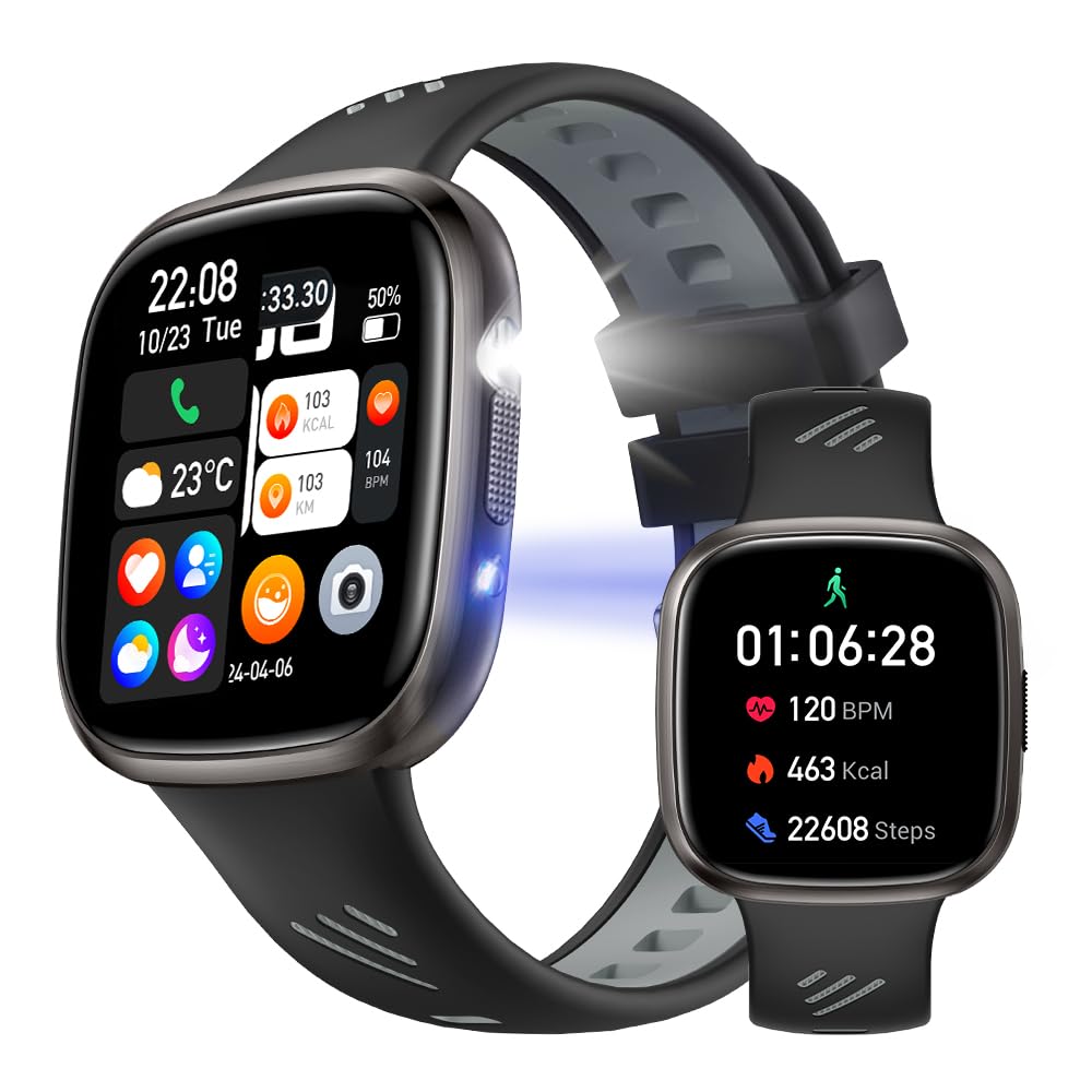 ・【高性能スマートウォッチ・ダイナミックアイランド搭載】2025最新版のスマートウォッチは1.72インチの高精度タッチディスプレイを採用し、画質と滑らかさにおいてこれまで以上に強力で、これまでにない快適な視覚感と優れた操作感をもたらしています。ダイナミックアイランド(Dynamic Island)機能搭載、音楽再生、タイマーはスマートウォッチのメイン画面に表示でき、面倒な音楽機能やタイマー機能を再び開く必要はありません。スマートウォッチの側面には懐中電灯とパープルランプ機能も搭載されています。地震や台風の災害で停電すると、この懐中電灯付きのスマートウォッチは緊急照明として役に立ちます。パープルランプ機能は紙幣の真偽を鑑別することができ、生活の中で実用性が非常に高い。・【便利な通話機能付き&APP通知&音楽再生】スピーカーとマイクを内蔵したスマートウォッチがスマホに接続されると、スマホを取り出さなくても、スマートウォッチ上で電話をかけたり、電話に出たりすることができます。着信時には、スマートウォッチが振動して着信音を鳴らし、通話中にいつでもスマホ通話に切り替えることができるので便利です。Line、Facebook、Twitter、WhatsApp、Instagramなどアプリからのメッセージはリアルタイムでスマートウォッチ側にプッシュされ、スマートウォッチで直接確認でき、大切なメッセージを見逃さない!スマートウォッチは、スマホの音楽の前の曲、次の曲、一時停止、再生、音量を制御するだけでなく、スマートウォッチを切り替えてスマホの音楽を再生することもできます。(※着信音、通知音、音楽の音はスマートウォッチの通話設定でメディア音楽のスイッチを入れる必要があります。)・【多種類な機能表示スタイル&110種類以上運動モード】このおしゃれなスマートウォッチは、スタイルに合わせて使える30以上の個性的な文字盤を取り揃え、ご自身が撮影した家族やペット、思い出やの景色写真を自分だけのオリジナル文字盤も作成可能です。また7種類の機能表示モデルがあり、設定によってすべての機能が同じ画面に表示されます。110種類以上のスポーツモデル:ランニング、ヨガ、水泳、登山、徒歩、テニス、サッカー、バレーボール、ダンス、腹筋、ハイキング、卓球、野球など、アプリを通じてデータのスポーツデータも確認できます。毎日の運動量を正確に把握することができます、運動不足解消や運動好きな方におすすめです。・【豊富な機能&IP68生活防水&頻繁な充電不要】スマートウォッチには振動強度調整、暗号ロック、カレンダー、SOS緊急ヘルプ、AI音声アシスタント、ゲーム、名刺QRコード、電卓、タイマー、目覚まし時計、天気、腕上げ点灯、スマホを探す、明るさ調整など、毎日のニーズを満たす機能が充実しています。IP68規格の防水・防塵性能を持ち、日常生活での手洗いや洗顔の際に取り外す必要がありません。注意:ダイビングや海水浴、サウナでの使用は避けてください。この多言語対応のスマートウォッチは300mAh大容量バッテリーを搭載され、一回のフル充電で3-7日間持続するバッテリーも魅力です。待機時間は約30日間となり、頻繁に充電する必要がなく、旅行や短期出張先でのバッテリー切れの心配も不要です。(個人の利用状況によっては、持続可能な利用時間が異なります)。・【適応機種&パッケージ内容&メーカー180日保証】このスマートウォッチはIOS9.0 / Android7.0以上対応のiPhoneおよび(Android)アンドロイドのスマホに適応しています。パッケージ内容:スマートウォッチ本体×1、USB磁気充電ケーブル×1、日本語説明書×1。※お買い上げ日から180日間の品質保証が付きます。万が一商品不具合のようでしたら、お気軽にご連絡下さい、アフターサービスが迅速に保証対応いたします。☆連絡方法:「アカウントサービス」>「注文履歴」>「販売元」>「お問い合わせ」。