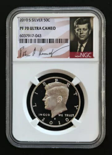 2010 S KENNEDY シルバー プルーフ 50c NGC PF70、シグネチャー/ポートレート ラベル、無料発送