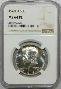 1969 D KENNEDY シルバー ハーフダラー MS64 PL NGC - 素敵です!