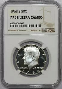 1968 S KENNEDY シルバー ハーフダラー プルーフ PF 68 ウルトラ カメオ - 素敵です!