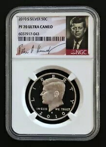 2010 S KENNEDY シルバー プルーフ 50c NGC PF70、シグネチャー/ポートレート ラベル、無料発送